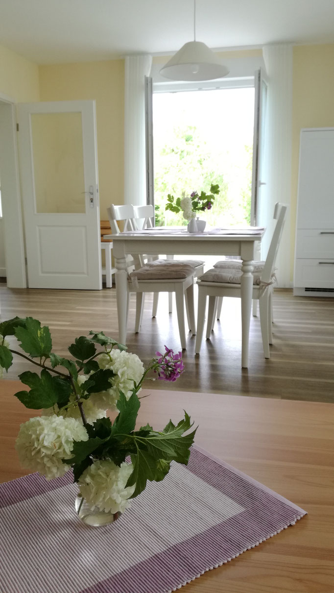 Die Ferienwohnung, die sich nur im Erdgeschoss befindet, verfügt über einen eigenen Abstellplatz für einen PKW. Die Außenanlagen der Ferienwohnung und der Mietwohnung sind voneinander getrennt.